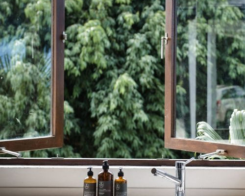 A coastal oasis beaming with Sunny Orange and woody Sandalwood